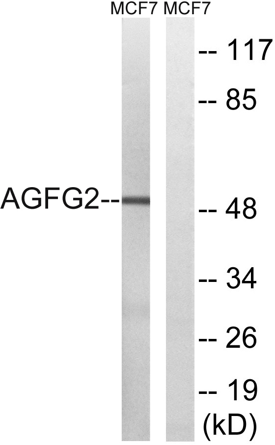 | Immunogen: | The antiserum was produced against synthesized peptide derived from the human AGFG2 at the amino acid range 91-140 |