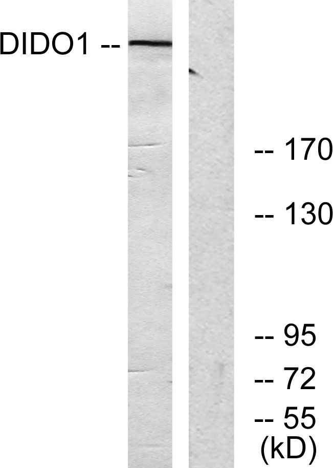 | Immunogen: | The antiserum was produced against synthesized peptide derived from the human DIDO1 at the amino acid range 161-210 |