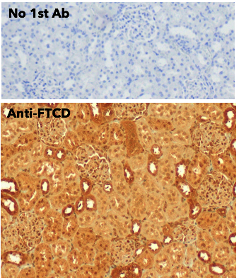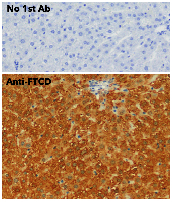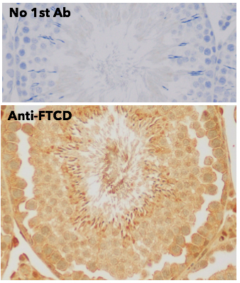 | Immunogen: | Purified recombinant peptide derived from within residues 50 aa to the N-terminus of human FTCD produced in E. coli. |