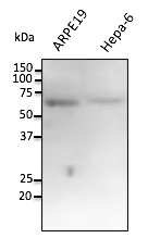 | Specificity: | Detects a band of 55-60 kDa by Western blot in the following canine, human, monkey, mouse, rat whole cell lysates. |