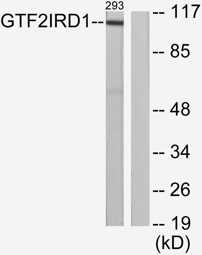 | Alternative Antibody Names | Anti-General Transcription Factor Ii-I Repeat Domain-Containing Protein 1 antibodyAnti-Gtf2i Repeat Domain-Containing Protein 1 antibodyAnti-General Transcription Factor Iii antibodyAnti-Mustrd1/Ben antibodyAnti-Muscle Tfii-I Repeat Domain-Containing Protein 1 antibodyAnti-Slow-Muscle-Fiber Enhancer-Binding Protein antibodyAnti-Use B1-Binding Protein antibodyAnti-Williams-Beuren Syndrome Chromosomal Region 11 Protein antibodyAnti-Williams-Beuren Syndrome Chromosomal Region 12 Protein antibodyAnti-GTF2IRD1 antibodyAnti-CREAM1 antibodyAnti-GTF3 antibodyAnti-MUSTRD1 antibodyAnti-RBAP2 antibodyAnti-WBSCR11 antibodyAnti-WBSCR12 antibody |