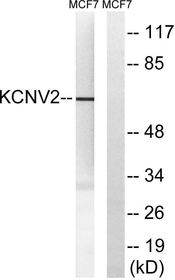 | Short Description : | Rabbit polyclonal anti-Potassium voltage-gated channel subfamily V member 2 (187-236 aa) for use in WB and IHC in Human and Mouse samples. Datasheet included with dilution recommendations, and related reagents. |