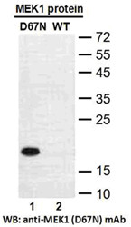 | Immunogen: | A synthetic peptide from the internal region of MEK1 which includes the mutation of D67N, human origin. |