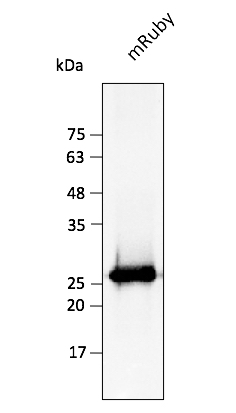 | Specificity: | In lysates of transfected cells with the plasmid containing the fluorescent sequence, detects the recombinant protein by Western blot. |