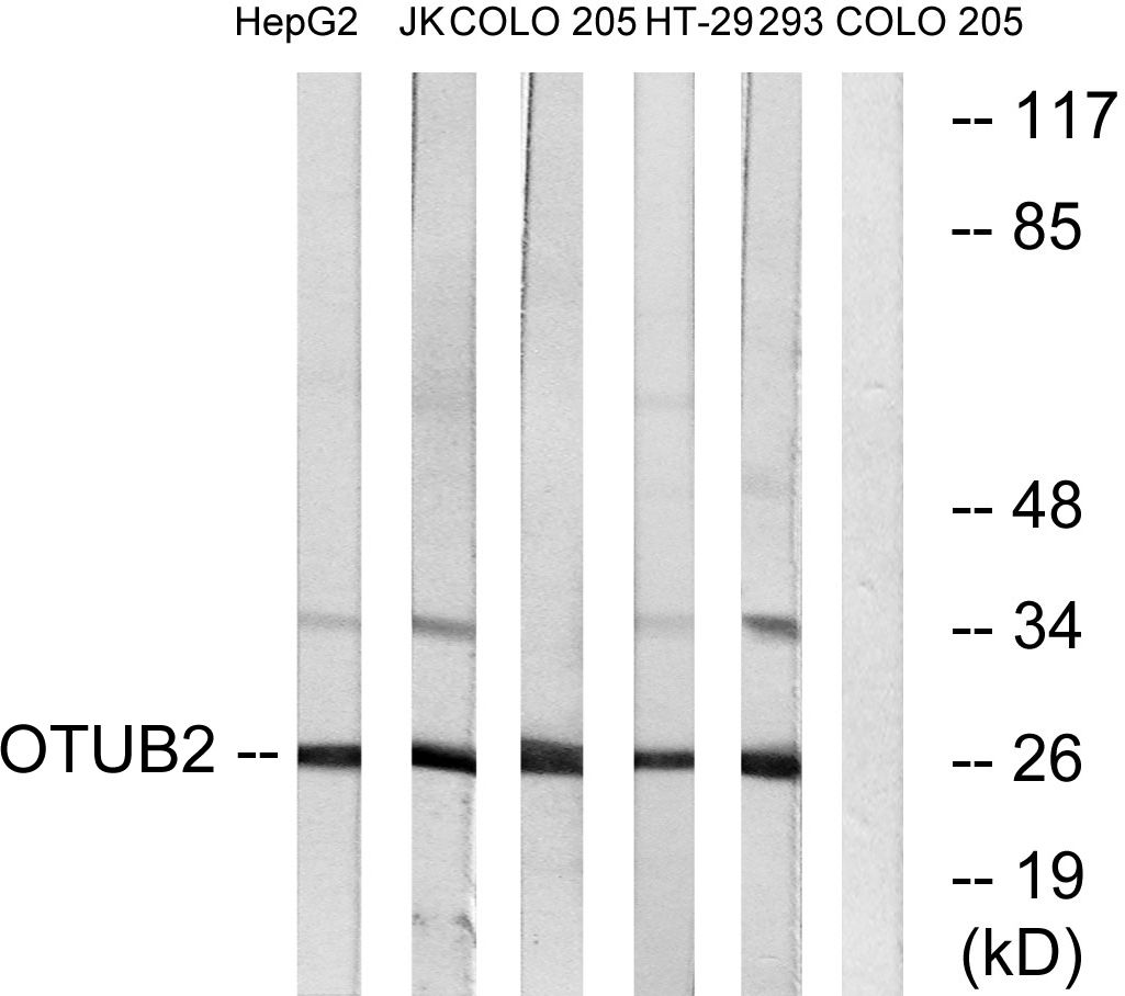 | Immunogen: | The antiserum was produced against synthesized peptide derived from the human OTUB2 at the amino acid range 133-182 |