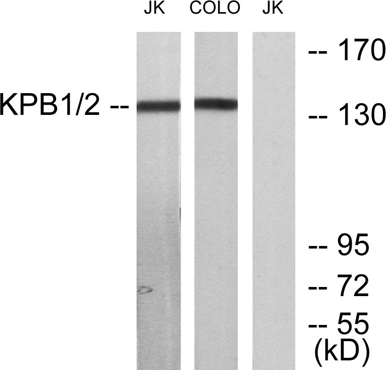 | Immunogen: | The antiserum was produced against synthesized peptide derived from the human KPB1/2 at the amino acid range 31-80 |