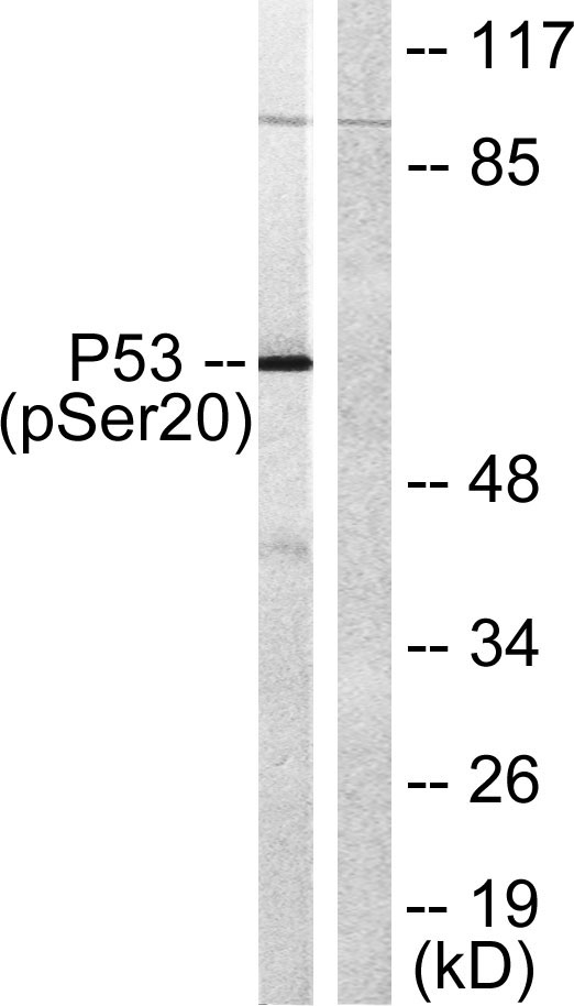 | Specificity: | Phospho-p53 (S20) Polyclonal Antibody detects endogenous levels of p53 protein only when phosphorylated at S20. |