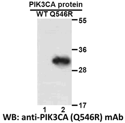 | Short Description : | Mouse monoclonal anti-PIK3CA-Q546R Mutant for use in WB in Vertebrates samples. Datasheet included with dilution recommendations, and related reagents. |