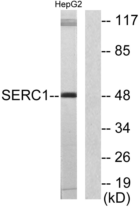 | Immunogen: | The antiserum was produced against synthesized peptide derived from the human SERC1 at the amino acid range 381-430 |