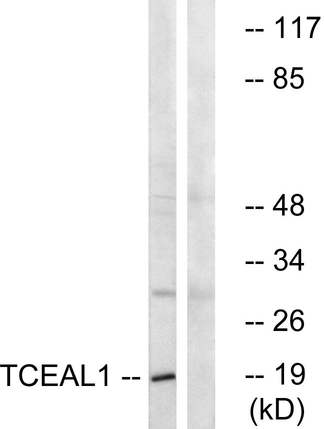 | Specificity: | TCEAL1 Polyclonal Antibody detects endogenous levels of TCEAL1 protein. |