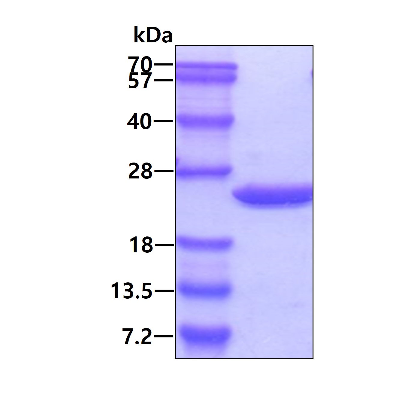 | Background | Recombinant Disulfide Oxidoreductase (rDsbA) , produced from E. coli is a periplasmic protein and thioredoxin superfamily member which introduces disulfide bonds directly into substrate proteins by donating the disulfide bond in its active-site Cys30-Pro31-His32-Cys33 to a pair of cysteines in substrate proteins. DsbA consists of 208 amino acids containing signal peptide (1-19 amino acids). Recombinant DsbA (residues 20-208) was expressed in E. coliand purified by using conventional chromatography techniques. |