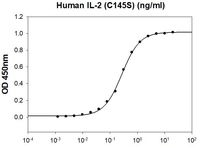 | Function | Cytokine produced by activated CD4-positive helper T-cells and to a lesser extend activated CD8-positive T-cells and natural killer (NK) cells that plays pivotal roles in the immune response and tolerance. Binds to a receptor complex composed of either the high-affinity trimeric IL-2R (IL2RA/CD25, IL2RB/CD122 and IL2RG/CD132) or the low-affinity dimeric IL-2R (IL2RB and IL2RG). Interaction with the receptor leads to oligomerization and conformation changes in the IL-2R subunits resulting in downstream signaling starting with phosphorylation of JAK1 and JAK3. In turn, JAK1 and JAK3 phosphorylate the receptor to form a docking site leading to the phosphorylation of several substrates including STAT5. This process leads to activation of several pathways including STAT, phosphoinositide-3-kinase/PI3K and mitogen-activated protein kinase/MAPK pathways. Functions as a T-cell growth factor and can increase NK-cell cytolytic activity as well. Promotes strong proliferation of activated B-cells and subsequently immunoglobulin production. Plays a pivotal role in regulating the adaptive immune system by controlling the survival and proliferation of regulatory T-cells, which are required for the maintenance of immune tolerance. Moreover, participates in the differentiation and homeostasis of effector T-cell subsets, including Th1, Th2, Th17 as well as memory CD8-positive T-cells. |