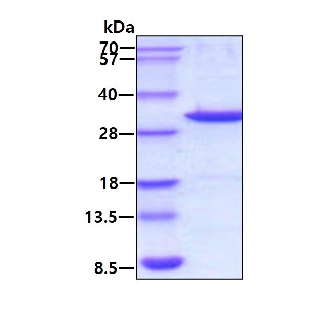 | Background | LGALS3, also known as galectin 3, is a member of the family of animal lectins, which selectively binds beta-galactoside residues. This protein is secreted from cells by ectocytosis, which is independent of the classical secretory pathway through the endoplasmic reticulum/Golgi network. LGALS3 has been associated with the inhibition of apoptosis and the progression of cancer. It is normally distributed in epithelia of many organs, in various inflammatory cells, including macrophages, as well as dendritic cells and Kupffer cells. The expression of this lectin is up-regulated during inflammation, cell proliferation, cell differentiation and through trans-activation by viral proteins. Recombinant mouse LGALS3 protein, used to His-tag at N-terminus, was expressed in E. coli and purified by using conventional chromatography techniques. |